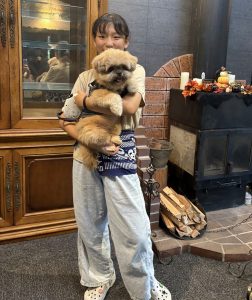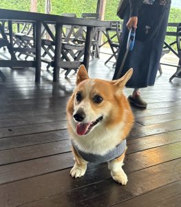 人が大好きなモナちゃん、スタッフにも笑顔をふりまいてくれます。